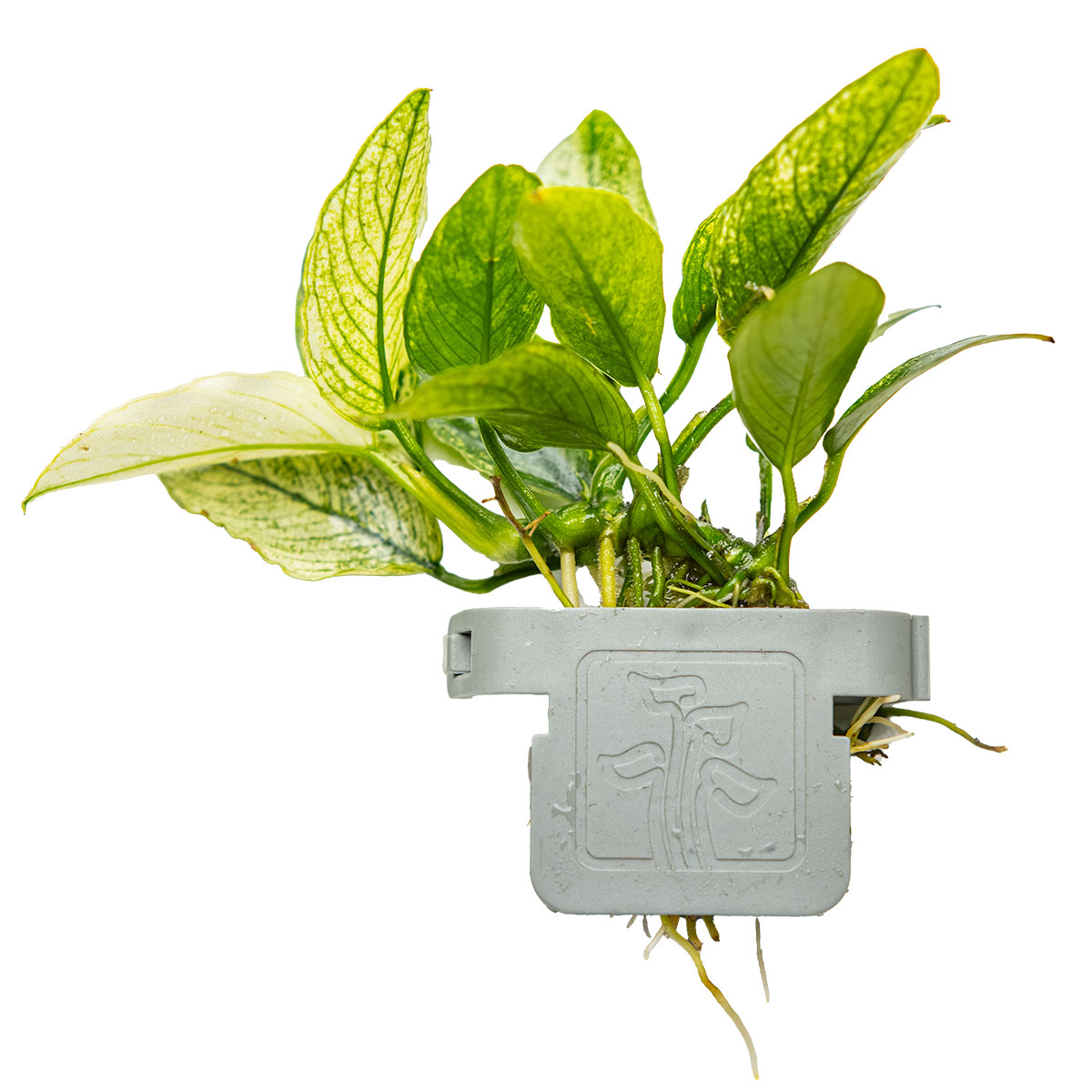 L’Anubias barteri var. nana ’Pinto’ est une variété compacte et décorative d’Anubias, caractérisée par ses feuilles vert foncé tachetées de blanc, apportant un aspect unique et original à l’aquarium. Elle atteint généralement 5 à 10 cm de hauteur, parfaite pour l’avant-plan ou les zones intermédiaires.
