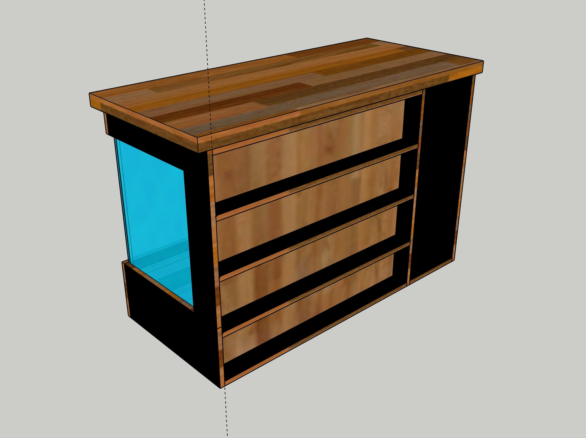 Pensé comme un meuble central de réception, il associe un aquarium de grande hauteur à une structure bar avec rangements intégrés.