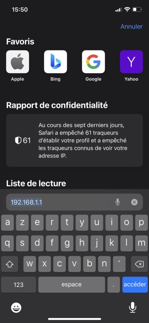 Depuis un navigateur, connectez-vous à l’adresse « 192.168.1.1 »