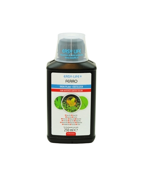 EasyLife Ferro est un fertilisant liquide riche en fer spécialement conçu pour plantes d’aquarium en eau douce. Il fournit du fer facilement assimilable, essentiel à la production de chlorophylle, ce qui aide les feuilles à rester bien vertes et structurées. Une carence en fer provoque souvent un jaunissement des feuilles (chlorose), particulièrement visible dans les bacs très plantés .