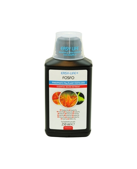 Easy‑Life Fosfo est un engrais liquide riche en phosphates (PO₄) spécialement conçu pour corriger les carences en phosphore dans les aquariums plantés d’eau douce. Le phosphore est un macronutriment essentiel à la croissance des plantes : sans suffisamment de PO₄, leur développement ralentit ou peut s’arrêter. Fosfo apporte une source ciblée de phosphate, particulièrement utile dans les bacs avec peu de poissons (donc peu de nutriments naturels) ou très densément plantés.