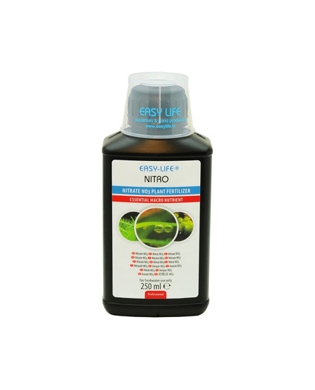 EasyLife Nitro est un engrais liquide pour plantes d’aquarium d’eau douce, spécialement conçu pour compenser les carences en azote (sous forme de nitrates), un macronutriment essentiel à la croissance des plantes aquatiques. Une carence en nitrates peut ralentir ou arrêter la croissance des plantes, surtout dans les aquariums fortement plantés ou avec peu de poissons. Nitro augmente la concentration de nitrates (NO₃) et de potassium (K) sans ajouter de phosphates, permettant une fertilisation ciblée et facile à doser.