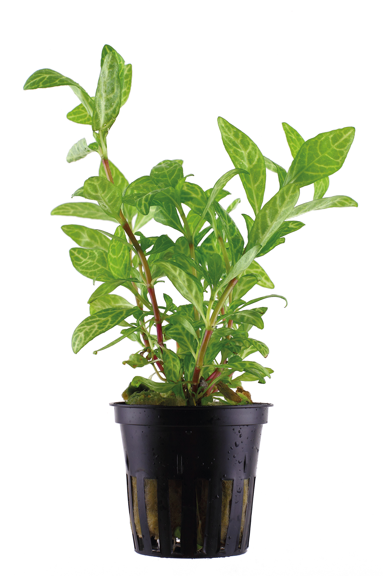 Cette variété présente des veines roses sur des feuilles vert foncé, ajoutant un contraste subtil de couleur. Elle pousse vite sous éclairage moyen à fort et sol riche, avec un apport en CO₂ recommandé pour intensifier les couleurs. En aquascaping, elle est utilisée pour créer des touches colorées dans les massifs arrière ou intermédiaires, apportant intérêt et variation dans le feuillage vert.