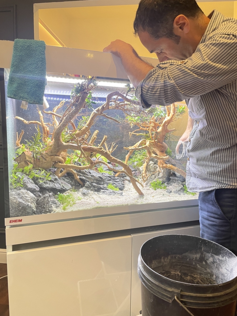 Réalisé en direct sur un EHEIM Incpiria 330, ce décor a pris forme au fil de la mi-journée dans une ambiance conviviale, rythmée par les échanges, la curiosité et l’enthousiasme de participants pleinement investis, qui ont eux-mêmes contribué à la mise en place du paysage aquatique.